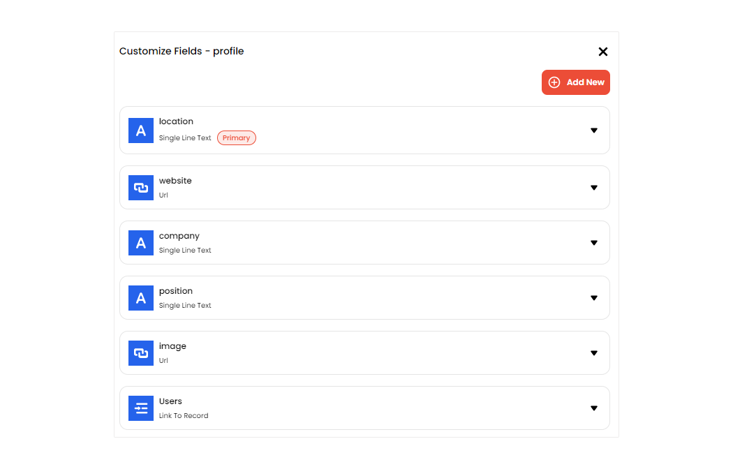 profileservice, selectCustomize Fields, then add some fields following picture below. note, there is a fieldUserswith data typeLink To Record. It means we create a data relation between the serviceprofilewith theUsers.
