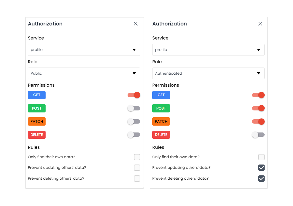 We need some configuration in Users service to make both autheticated user and public can get or access users data. But don't worry, by default that will not return password, so user still secure.